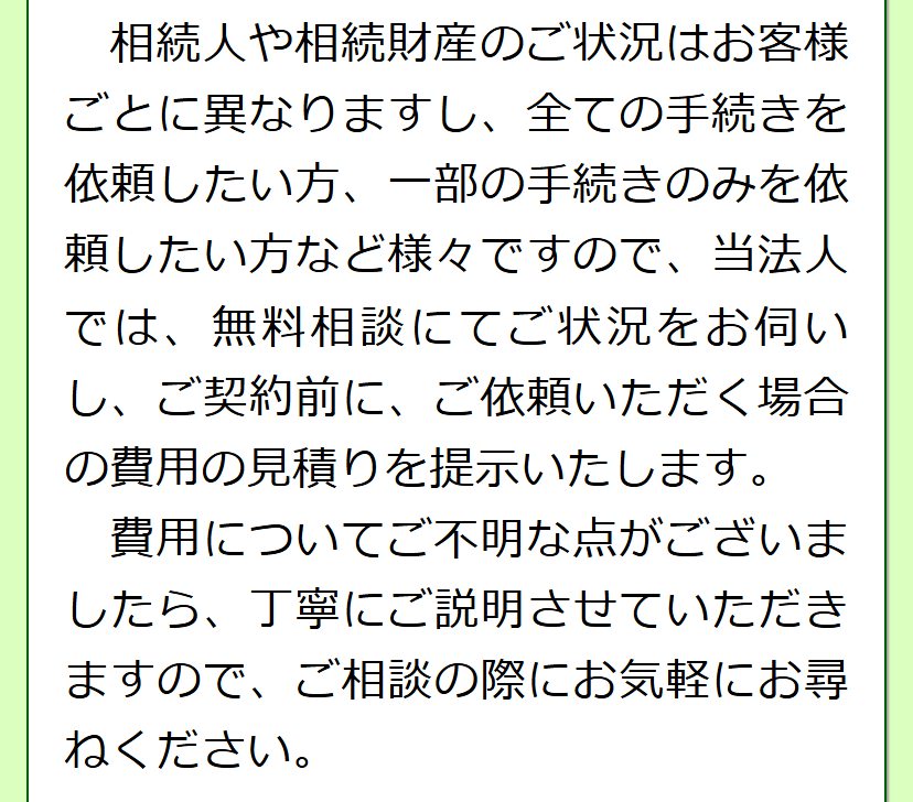 お仕事やご家庭の事情で時間を割きにくい方や、相続手続きに慣れていない方にとっては、大きなメリットであるといえます。