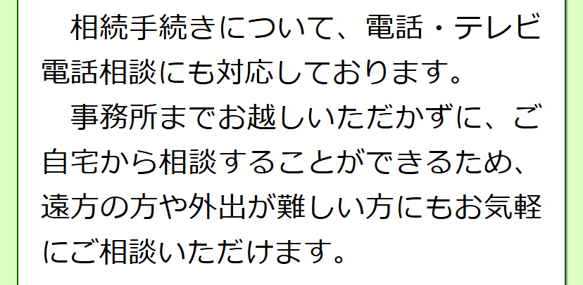 相談者の方の状況をしっかりと伺ったうえで、相続手続きの複雑な流れや今後の見通しについてアドバイスさせていただきます。
