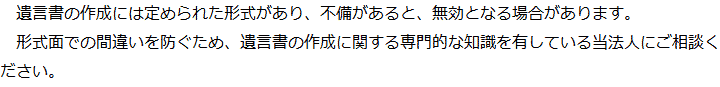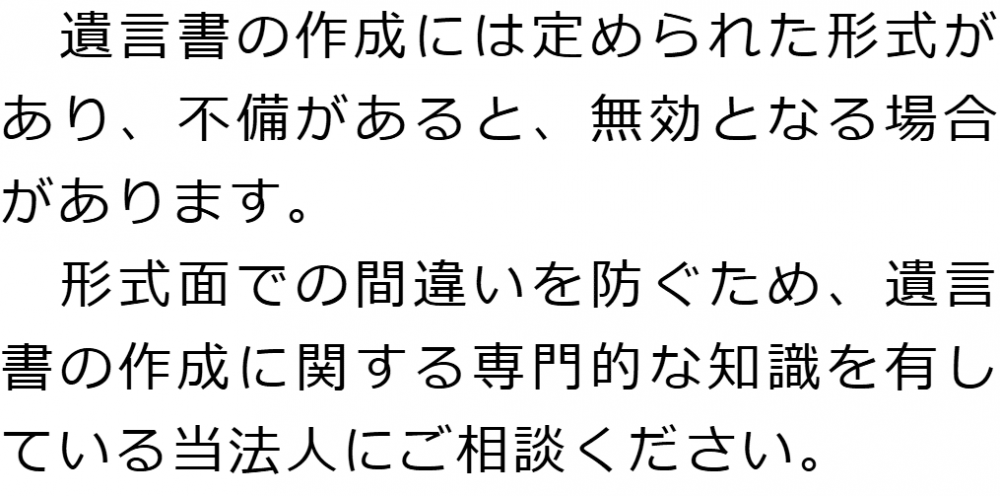 トップ業務内容遺言 階層構造▼ 業務内容(目次) 遺言 業務内容(目次)業務内容トップ行政書士法人相続百花の業務内容遺言遺産整理相続人調査相続財産調査遺産分割協議書の作成預金・貯金の解約・名義変更証券口座の解約・名義変更自動車の名義変更心グループのその他の業務内容家族信託・民事信託節税対策事業承継遺言の検認相続放棄限定承認遺産分割遺留分侵害額請求相続登記相続税申告相続税調査 受付時間 平日 9時~21時、土日祝 9時~18時 夜間・土日祝の相談も対応します (要予約) 所在地 〒060-0808 北海道札幌市北区北8条西4‐1-1パストラルビルN8 2F 0120-15-2403 お問合せ・アクセス・地図