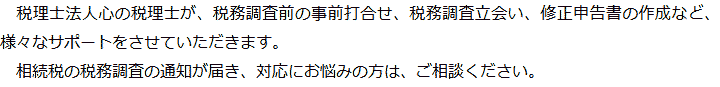 トップ業務内容相続税調査 階層構造▼ 業務内容(目次) 相続税調査 業務内容(目次)業務内容トップ行政書士法人相続百花の業務内容遺言遺産整理相続人調査相続財産調査遺産分割協議書の作成預金・貯金の解約・名義変更証券口座の解約・名義変更自動車の名義変更心グループのその他の業務内容家族信託・民事信託節税対策事業承継遺言の検認相続放棄限定承認遺産分割遺留分侵害額請求相続登記相続税申告相続税調査 受付時間 平日 9時~21時、土日祝 9時~18時 夜間・土日祝の相談も対応します (要予約) 所在地 〒060-0808 北海道札幌市北区北8条西4‐1-1パストラルビルN8 2F 0120-15-2403 お問合せ・アクセス・地図